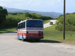 サイパンは信号がほとんどなく、ゴルフ場の中のような道ばかりでとてものどかでした。また、数少ない信号も、停電で良く消えてしまうとのことでした。 |  |