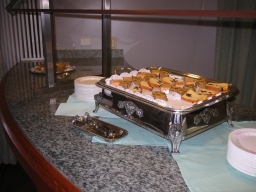 ![]() | ![]() | しばらく硫黄島を見ていたので、食事は9時ごろに出かけました。11Fのビュッフェですが、初めて右舷側「リドガーデン」と呼ばれる方で食べました。ビュッフェワゴンはこの右舷プール寄りと、いつもの左舷船尾側の2箇所に同じ物がありますが、卵料理の調理サービスは左舷側だけでした。 |