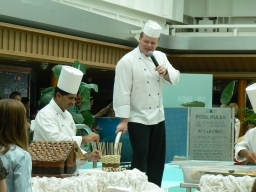 | 一通りショーが終わった後、しばらく自由に見て回ることが出来ました。それにしても面白い催しでした。食に自信のあるセレブリティ・クルーズならではのイベントなのでしょうか。 |  |  |