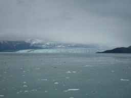 |  | 正午過ぎ位からゆっくりと氷河に近づいて行った本船は14時過ぎに再接近し、15時過ぎまでここにいます、とアナウンスがありました。望遠で撮影すると凄い迫力ですが、とにかく寒いです。ハバード氷河の左側には、ターナー氷河があったようですが、それとは知らずに撮影していました。 |