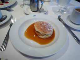 | 乗船してから毎日ヘビーに食べていますが、美味しそうなメニューならまた是非食べたくなってしまうのが本船のダイニングの凄い所です。実は乗船前に日本食が恋しくなったらどうしよう、と心配したのですが全く無用で、醤油を一滴たらしたら良くなるのに…という場面が今の所ありません。メニューは前菜盛り合わせ、エスカルゴ、ニューオーリンズ名物ガンボ(スープ)、ニューヨークステーキ等があり、これは今晩も食べるしかないと思ったのは言うまでもありません。 |  |