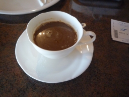 ![]() | 私はこのあたりで漸く起床し、部屋にあったセットでコーヒーを作りました。本船ではレストラン「オアシス」もカフェも朝食のサービスはありませんし、あったとしても早過ぎてまだ何も食べたくない感じです。 ちなみにカフェの営業時間はこの時期は@乗船時〜11時半A15時〜16時半B19時半〜21時と、レストランの12時〜13時、18時〜19時半を外して営業していました。 | |