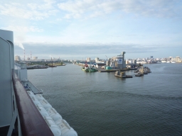 | 10時半のほぼ定刻に離岸しました。フネはスラスターによって自分で軽やかに岸壁を離れていきます。 | ![]() | |