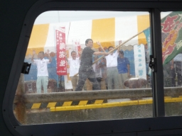 | 大漁旗を振っての見送り | この角度はなかなか | ようやく戻りました |