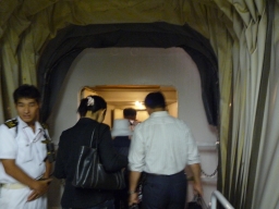 ![]() | 船尾にあるダイニングからの帰りに、そのまま船首にあるメインラウンジ「ル・パシフィーク」へダンスの様子を覗きに行きましたが、全体的にカジュアルそうな雰囲気の本船の中に、やや異質な空間が広がっていました。 | |
