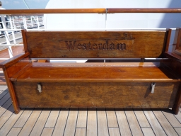 ![]() | いよいよ伝統のホーランド・アメリカ・ラインに乗船です。本船「ウエステルダム」はホーランドアメリカが保有する「ビスタ・クラス」と呼ばれる船隊の3番船で、「西のダム」という意味です。同型の姉妹船3船も同様に東「OOSTERDAM」、南「ZUIDERDAM」、北「NOORDAM」と名付けられているのが特徴です。 これら4船のベースデザインは同じカーニバル帝国の他船にも利用されており、キュナードの「クイーン・ヴィクトリア」「クイーン・エリザベス」、P&Oの「アーケィディア(ARCADIA)」などかなり雰囲気が似ているのがわかります。 | |