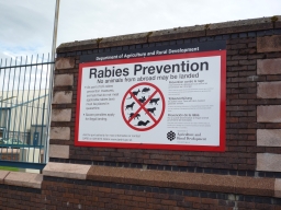 ![]() | 港を出ると狂犬病の予防に関する表示が出ていました。英国は世界でも数少ない狂犬病清浄国(もちろん日本も)なので、外来の動物の入国には大変厳しい検疫を課しています。 | ||