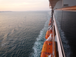 (英語について) 海域によっては日本人コーディネーターが乗船することもあるようですが、今回のクルーズはそうではなかったため日本語対応は皆無でした。でも添乗員付きのツアーで行ったため、添乗員さんがきめ細かいサービスをしてくれました。船内誌デイリープログラム(Daily Program)を毎日翻訳して印刷したものが部屋に届けられましたし、メニューも昼版と夜版を毎日訳して部屋に届けてくれました。これ以外にも寄港地の観光ポイントや、日本語の注意書きの入った地図を配ってくれました。 (ダイニングについて) トラディショナルな2回制の固定シーティングだったので、個人手配だと思い切り横メシになるところでしたが、日本人ツアー客11人分を2テーブルにまとめてくれたのでラクに過ごせました。メインダイニングの料理はどれも凝っていて美味しかったです。 (サービスについて) 伝統ある船会社がかつての植民地であるインドネシアのクルーを多用し、きめ細かなサービスを提供していました。客室の掃除も迅速に丁寧に行われていましたし、朝食のルームサービスも完璧でした。インドネシアクルーもフィリピンクルーも誇りを持って仕事をしているようでした。 (船内の設備について) 嫌味なく至るところに絵画やら彫刻やらの美術工芸品が飾ってあるのは伝統のなせる技でしょうか。バルコニーの椅子が籐編み風なのはインドネシアを意識しているのでしょうし、プロムナードデッキやプールデッキがチーク材で覆われているのはかつてのオーシャン・ライナーを彷彿させました。プロムナードデッキがぐるりと一周出来るのはとても良かったです。 (乗客) 2,000名近い乗客のうち約半分の903名がオランダ、638名がアメリカ、128名がカナダという構成でした。英国が私達日本人14名より少なかったのは意外ですが、わざわざロッテルダムに行かなければならないのがネックだったのでしょう。ヨーロッパでのクルーズは初めてだったのですが、今回のようにヨーロッパ人の乗船客が多いからか、アメリカ資本のフネにもかかわらずかなりかっちりとした雰囲気になっていました。ドレスコードがしっかりと守られていたのはもちろん、朝からジャケット着用の紳士がいたのが印象的でした。なお年齢層は比較的高めでした。 (クルーズログ) 最終日に配布されたクルーズログには、各寄港地の入出港時刻や正午の気象状況、正午に航海中であればその船位(ポジション)が記載してありました。この他に本船の燃料油消費量が書いてあったのですが、ディーゼル発電機(C重油)が216トン(/日)、ガスタービン(A重油)が90トン(/日)の油を焚いていました。飛鳥Uが確か100トン、にっぽん丸で50トン弱だということを踏まえると大変な消費です。水は一日に消費量の2倍近い1,700トンを生産出来るとのことでした。 (その他) 添乗員付きのクルーズツアーに乗っかったのは初めてでしたが、個人手配に比べ多少割高になるものの精神的に大変ラクに過ごすことが出来ました。成田空港に集まった時から添乗員さんにお任せになるのは、心配性の夫にとってかなりの負担軽減になっただろうと思います。土地勘がなく空港と港が離れている場合には、ツアーを使うのがお薦めだと思いました。 それからあまり観光情報のない寄港地では、添乗員さんが徒歩のツアーを企画してくれたのですべて参加しました。自分達だけではなかなかわからないことも、手作りの地図や観光情報のおかげで事前に仕入れることが出来ました。個人手配が多かった私達ですが、旅行会社のきめ細かな対応に感心しました。 エジンバラのミリタリー・タトゥを見たいがために一石二鳥と参加したこのクルーズの航程は、陸のツアーでは一度に全部行くのは難しい場所に効率よく連れて行ってくれました。本船「ウエステルダム」は夏のシーズンは基本アラスカのようですが、たまたまこの年にここにいてくれたのは何かの縁なのでしょう。同型船でも構いませんが、またいつか「ウエステルダム」に乗船してみたいと思います。 「ウエステルダム号・12泊の英国周遊の感想(2010年8月30日)」【2013年6月記】 |