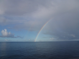 ![]() | 「飛鳥U」での2011年世界一周クルーズの最終週が明けた月曜日、木曜日には横浜入港という現実が迫ると急に時間が惜しくなり、6時半に起床しました。すると前方に虹がかかっていました。 | ||||||||||||||||||||||||||