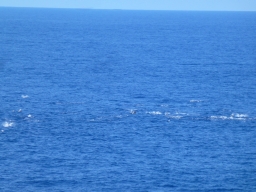 | 食後「パーム・コート」で新聞を読んでいると、9時20分頃ブリッジからの案内でイルカの大群が左舷にいると放送がありました。左舷なら!と部屋に駆け下りてバルコニーから撮影しました。 【画像はクリックで拡大】 | ![]() | ||||||||||||||||||||||||||
