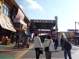 ![]() | 約15分程で見学を終え、来た道より山側に入った土産物店街を通って港に引き返しました。これでもか、ともみじ饅頭の実演販売をしていたため、焼き立てのこしあん1つ75円を買って食べました。 | |