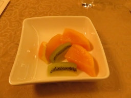 ![]() | このクルーズ初のインフォーマルディナーは、ダイニングの入口でたまたま会った2011年世界一周クルーズ以来の知り合いご夫妻と一緒することになりました。割高なワインは止めてアスカサケにしました。 | ||||||||||||||||||||||||