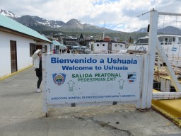 | ウシュアイアの商業港の方の入口には「PROHIBIDO AMARRE DE LOS BUQUES PIRATAS INGLESES」と書いてあるバナーがありました。フォークランド紛争の遺恨から法律でイギリス船籍の船舶の入港を禁止している模様です。 |