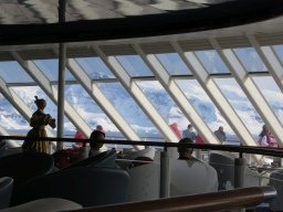 | 8時過ぎに11Fのリドに行くと、既に大勢の人が南極仕様のパルカで風景を楽しんでいる様子でした。 |