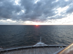 | これはマズイ、と慌てて飛び出して後方のジムの所にある出入口から外に出ると果たして既に背中を向け始めている「ノーウェジアン・サン」がありました。 | ![]() | ||||||||||||||||||||||||
