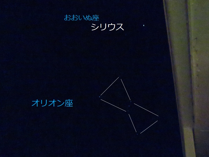 | 滅多に経験出来ない大河での客船との行き交いの興奮冷めやらぬまま見上げると、天頂やや西方面にオリオン座とおおいぬ座のシリウス(太陽を除くと地球から最も明るく見える恒星)が見えました。 【画像はクリックで拡大】 | ![]() | ||||||||||||||||||||||||