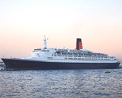 ちなみに QE2(イギリス船籍) ■総トン数/70,327トン■全長/296m■全幅/32m■航行速力/32.5ノット■乗客数/1,496人■就航年:1969年5月 ボイジャーオブザシーズ(リベリア船籍)-->世界最大 ■総トン数/142,000トン■全長/310.9m■全幅/48m■航行速力/18ノット■乗客数/3,114人■就航年:1999年11月